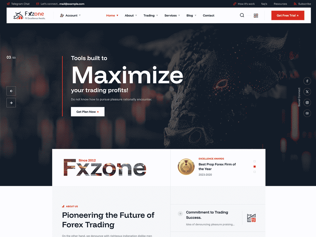 Fxzone – Forex Prop Firm WordPress theme would be suitable for businesses that are involved in proprietary trading or investment firms specializing in foreign exchange (forex) markets. Proprietary trading firms engage in buying and selling financial instruments, including currencies, using their own capital rather than clients’ money.. This theme is ideal for all businesses that are related to finance, banking, business consulting, personal loan and credits, credit cards, finance, insurance, broker business and Forex trading etc. Easy to set up, customizable and designed with professionalism in mind, Fxzone will help you create an impressive website in a matter of minutes. It offers everything you need to build an online profile for your business including company, markets, trading, our accounts, , blogs, testimonials, our team, team single, contact etc. You can easily edit and customize the default homepage to make it in line with your specific content arrangement using the Elementor page builder… Fxzone has professional, pixel perfect and clean modern layouts for almost any website need. The design is very elegant and modern, and also very easy to customize with 1170px grid. Using this theme’s features, you can quickly create an eye-catching, user-friendly website for visitors. The theme contain a lot of feature sections to design & customize accordingly. Its optimized design system makes the theme very easy to customize. Fxzone is a clean responsive wordpress theme. It includes Elementor plugins free with theme. The theme comes with the option of met form to allow users to contact you. Fxzone is fully compatible with latest version of plugins to allow you easy handling. The Fxzone comes with one click demo and also more flexible features.